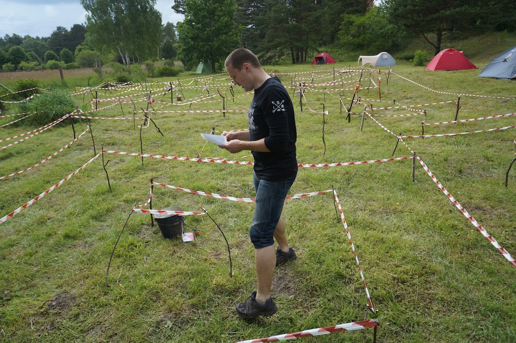No organizācijas viedokļa laikietilpīgākā disciplīna, kuras galvenā pārzine bija trases autore un izlicēja Marina. Savu ieguldījumu knišļu barošanā un mietiņu spraušanā devām arī Edijs un es, un jāatzīst, ka tā knišļu padarīšana bija vienas vienīgas šausmas. Prātā varēja sajukt. Tomēr gandarījums par izveidoto distanci atsvēra pūles un daudzos sarkanos punktiņus uz visām apģērbta nepiesegtajām zonām.