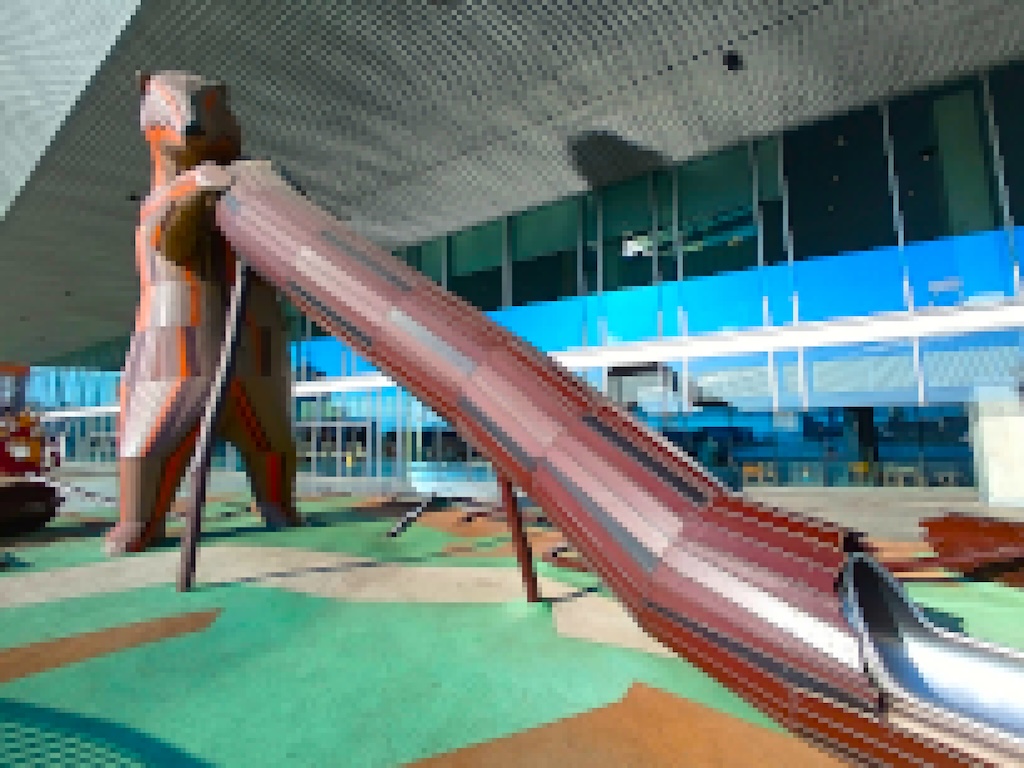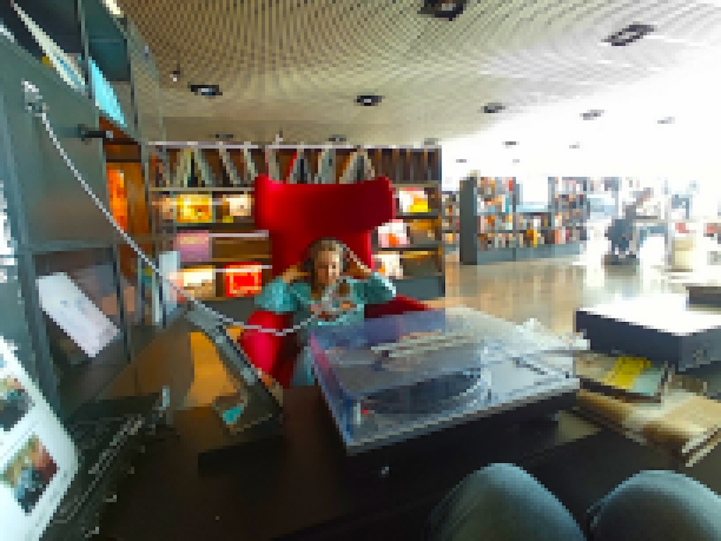 Nekādi nedrīkst aizmirst arī Bibliotēku. Jā, mēs bijām arī bibliotēkā. Patiesībā gan Dokk1 ir ne tikai bibliotēka, bet arī kultūras centrs, kur mūsu viena no apmeklējumiem laikā bija iespēja noskatīties dejas priekšnesumu (bet Estere nebija intereses to redzēt un patiesībā man arī nē). Līdzās grāmatu lasīšanai tu tur vari arī atrast daudz vietas strādāšanai vai mācībām, klausīties skaņuplates (šo iespēju mēs izmantojām divas reizes), ir milzīgs bērnu stūrītis pavisam mazajiem, LEGO stūrītis un tā tālāk. Līdz ar to, kad Marinai sūtīju bildes no šīs bibliotēkas, kādā brīdī viņa pavaicāja: "Vai grāmatas tur arī ir?" Ir, un daudz, šī esot lielākā publiskā bibliotēka Skandināvijā. Arī angļu valodā grāmatu ir daudz. Un visapkārt bibliotēkai ir bērnu rotaļu laukumiņš ar iespaidīgām konstrukcijām, kas Esterei īpaši patika. Līdz ar to mums radās joks.