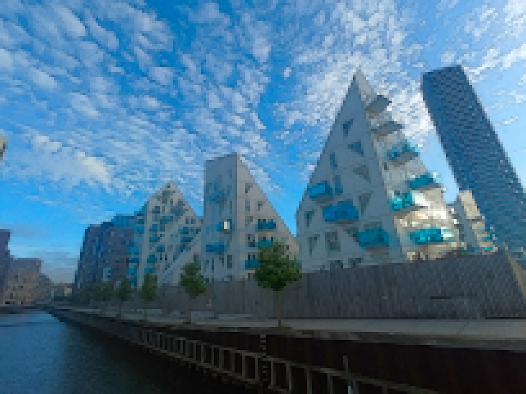 Tāpat ar Esteri aizbraucu uz vietu, kur iepriekš biju skrējis - uz Aarhus Docklands, kādreizējo konteineru ostu, kurā kopš 2008. gada uzbūvēta virkne patiešām skaistu modernu ēku (kārtējo reizi apliecinot, ka mūsdienu arhitektūra var būt ļoti spilgta). Piemēram,