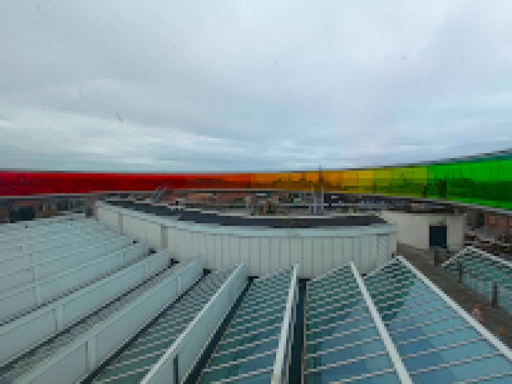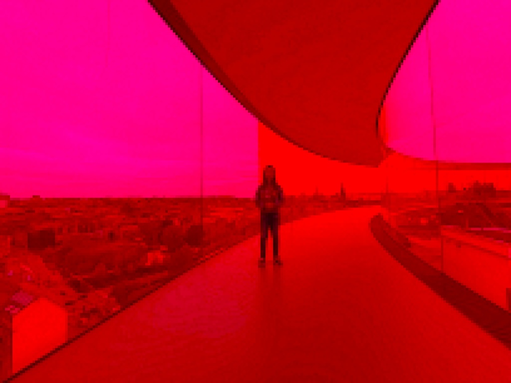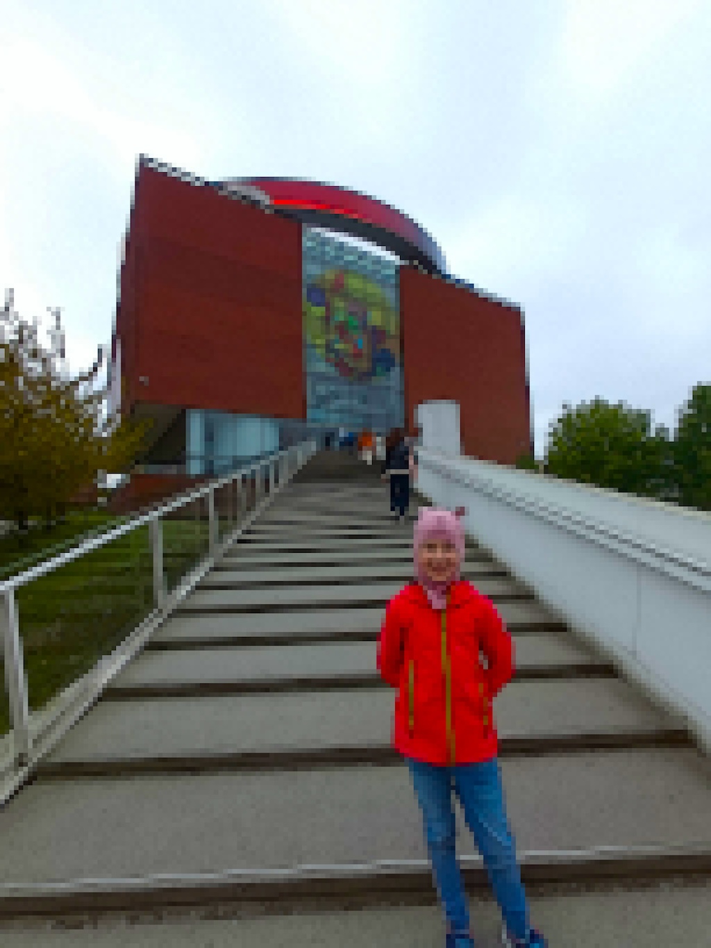 Otrais nozīmīgākais objekts ir jau reiz piesauktais ARoS. Pats mākslas muzejs ir sens - dibināts jau 1859. gadā, taču tā tagadējā ēka ir atklāta 2004. gadā, un pati par sevi ir interesants apskates objekts, kura zīmīgākā detaļa ir Varavīksnes panorāma uz ēkas jumta. Kas ir Varavīksnes panorāma? Pilnā varavīksnes spektrā tonētiem stikliem veidota apļveida konstrukcija, kur tu pilsētas panorāmu, atkarībā no savas atrašanās vietas, vari redzēt ietonētu dažādās krāsās. Šis objekts, ja kas, ir jaunāks par pašu ēku, atklāts 2013. gadā, un tas ir tik stilīgs, ka, izmantojot iespēju ar ARoS biļeti dienas gaitā ēkā atgriezties atkal, tur pabiju veselas trīs reizes. Taču, protams, ARoS ir vērts apmeklēt ne tikai panorāmas dēļ, bet arī kā mākslas muzeju. Līdzās pastāvīgajai ekspozīcijai, kurā lielākais uzsvars ir uz Dānijas mākslinieku darbiem (tas arī ir loģiski), šajā brīdī bija divas centrālās izstādes: "Pikaso, Miro, Ležērs un daudzās modernisma balsis", kā arī Igšāna Adamsa izstāde "Weerhoud" (iepriekš izrādīta Anglijā). Esterei labāk patika otrā, bet vēl labāk - muzeja pagrabā apskatāmās instalācijas. Un to droši vien var saprast - visādi telpiski objekti bērnam ir daudz labāk uztverami par gleznām, kurās lielākoties tev vēl nepieciešams skaidrot, kas tajās vispār ir attēlots. Es gan iespēju robežās centos viņai skaidrot (cik nu pats to visu saprotu), bet pamata secinājums man bija - Pikaso/Ležēru/Miro gribēju aiziet apskatīties vēlāk tajā pašā dienā vienatnē, visu kārtīgi apskatīt, bez stresa un steigas (un tā patiešām arī izdarīju). Kas attiecas uz instalācijām - tās patiesībā man arī patika, tur nebūtu ko sūdzēties. Dāņu mākslas kolekcijā amizantākais bija tas, cik ļoti atsevišķu mākslinieku darbos varēja redzēt, ka viņi iespaidojušies no Van Goga, Dali un/vai Pikaso. Un otrs novērojums - ka mani kopumā atstāj gluži vēsu pirmsfotogrāfijas ēras glezniecība, protams, ar izņēmumiem, ir mākslinieki no senākiem laikmetiem, kur tevi pārņem "wow!" sajūta, bet visi tie vidēji labie portretisti, marīnisti, peizāžisti un Bībeles ainu atveidotāji, kuru katrai tautai, kurai bija savi mākslinieki tajos laikos, kad latviešiem tādu vēl nebija, ir čupām - nu, galīgi nevaru teikt, ka mani tur kaut kas baigi spētu sajūsmināt.