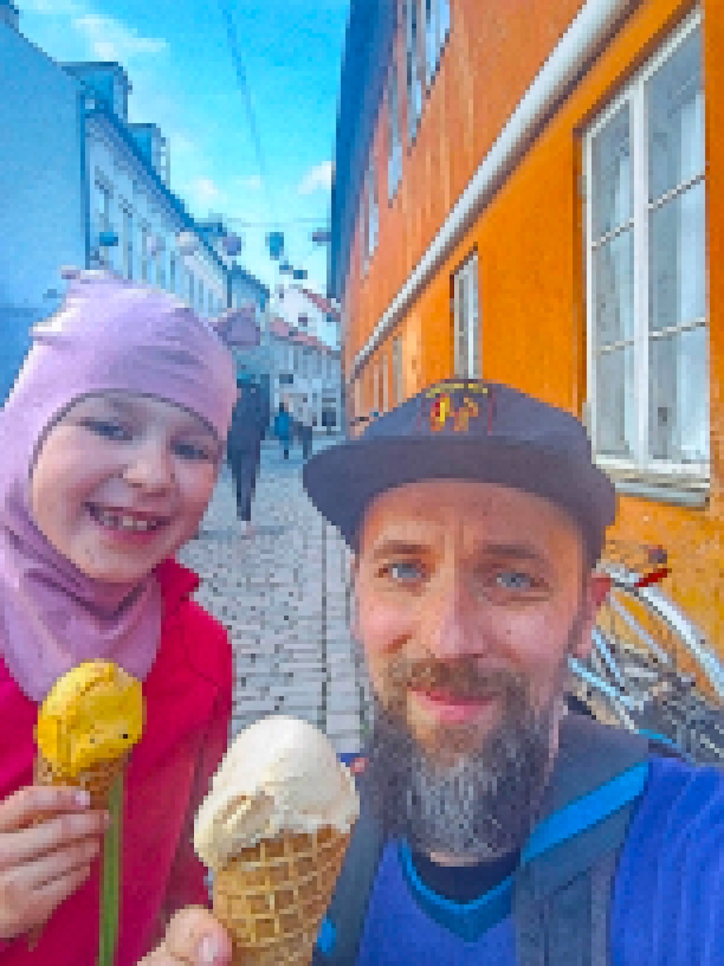 Pirmkārt, apmeklējām Den Gamle By jeb Vecpilsētu. Ar to gan nevajag saprast vecpilsētu tādā nozīmē kā, piemēram, Vecrīga. Drīzāk tas ir Etnogrāfiskais muzejs, taču ar visai atšķirīgu pieeju nekā Rīgas Brīvdabas muzejam. Proti, kamēr Rīgā tu vari apskatīties, kā cilvēki dzīvoja laukos deviņpadsmitajā gadsimtā, tad šajā muzejā ietvertais laika periods un vide ir plašāks un daudzveidīgāks. Sākot ar kādu 16. gadsimtu un beidzot ar mūsdienām. Jā, šajā muzejā tu vari ne tikai apskatīt no kādas citas vietas Dānijā pārvestu destilētavu vai senu cepuru darbnīcu, bet arī dzīvokli, kurā 2014. gadā mitinājusies vientuļa sieviete, kas lieto Tinderi un izīrē savu dzīvokli Airbnb, kamēr pati ceļo. Un hipiju komūnas mītni no pagājušā gadsimta septiņdesmitajiem gadiem. Un bērnudārza grupiņu pirms 50 gadiem. Un pensionāru pāra dzīvokli. Un mūsdienu ģimenes (divas mammas un trīs bērni) mitekli. Man un Esterei galvenais uzdevums katrā no šiem mitekļiem bija apskatīties - kas viņiem ir ledusskapī. Šādu izpratni par etnogrāfiju es iepriekš pieredzējis nebiju, un varu teikt, ka Den Gamle By ir viens no stilīgākajiem muzejiem, kādā man gadījies paviesoties.