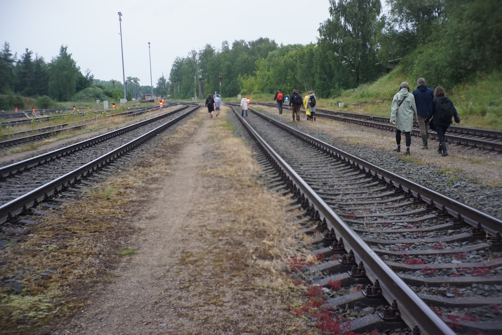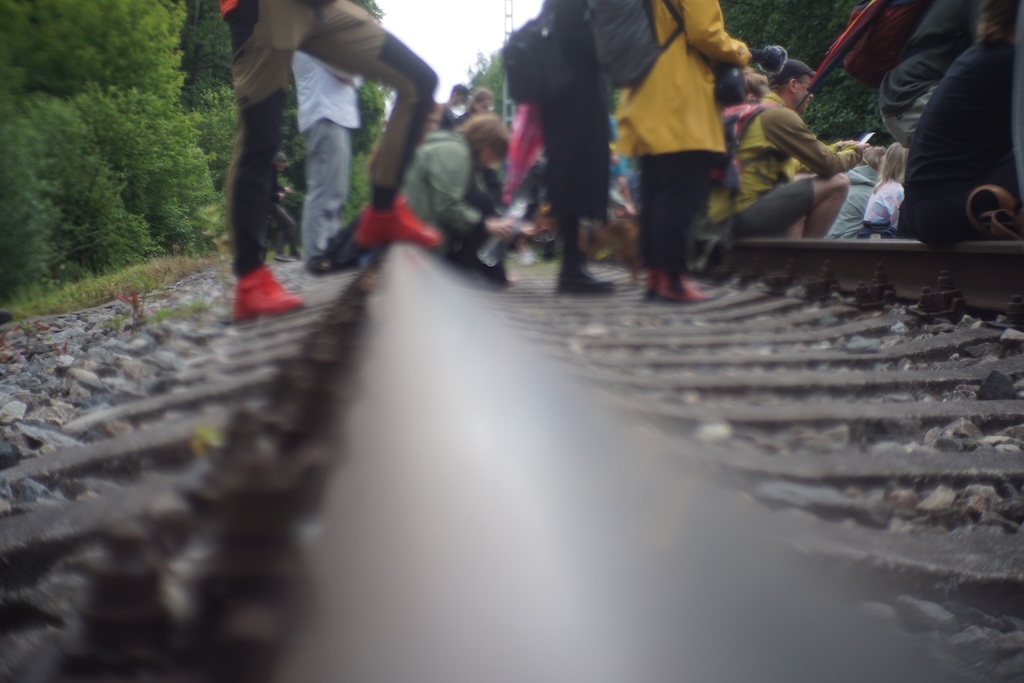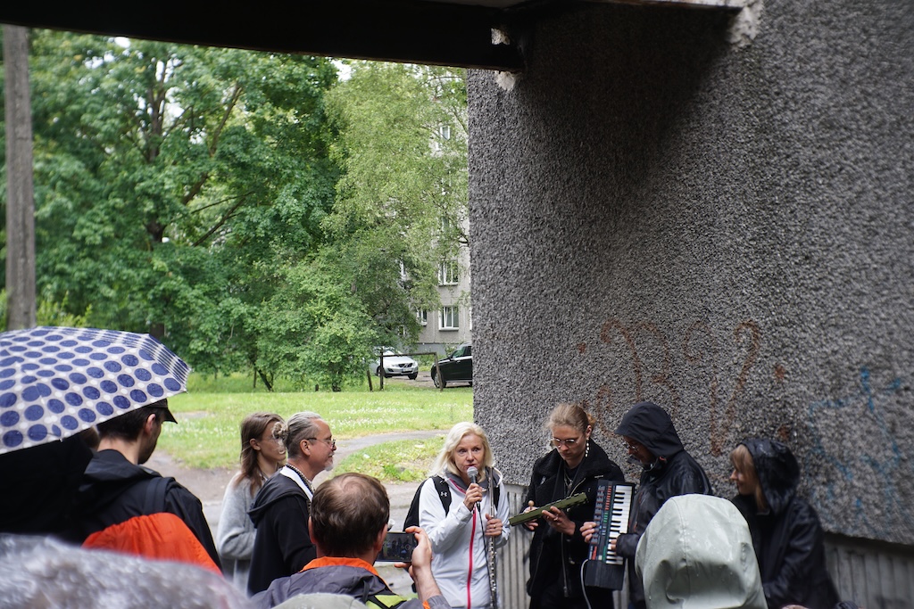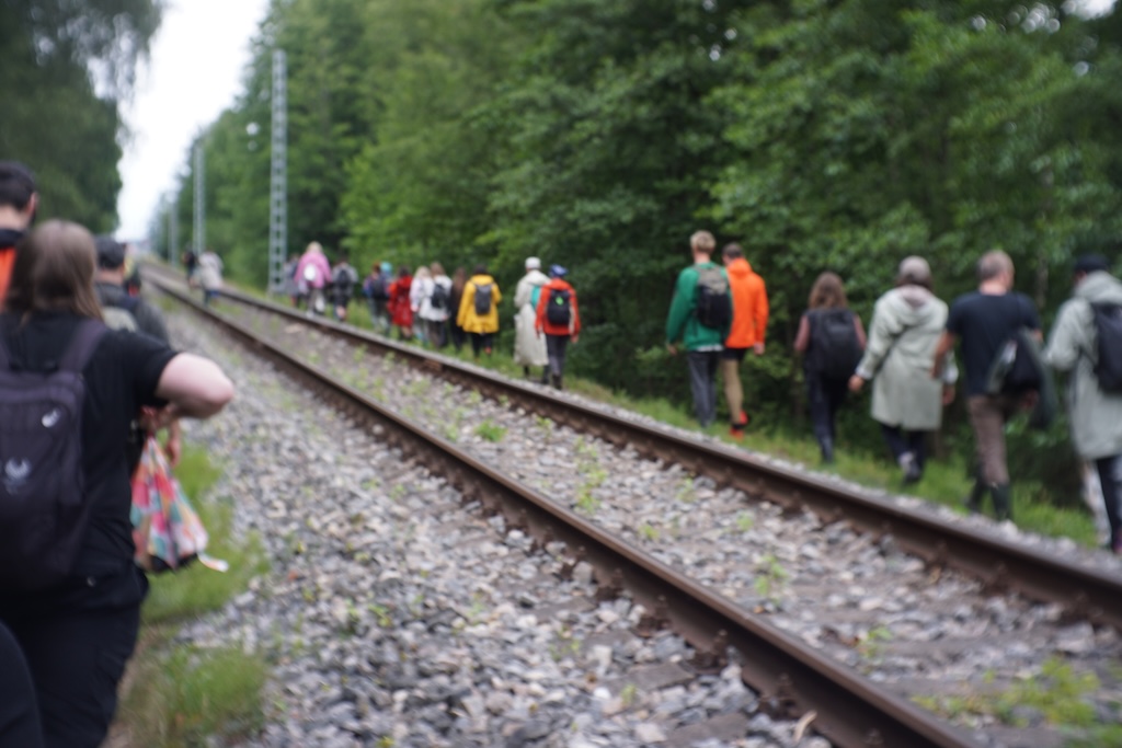 Sākums - Buļļu ielā. Portālā starp piecstāvenēm, kur satiekas betons. Turp iets gar sliedēm no Zasulauka. Pasažieru vilciens tur nebrauc sen. No laikiem, kad Elviss bija armijā. Sākās lietus. Pēc tam lija vēl. Un reizēm nelija. Ir bijuši lieti un izbijuši. Portālā uzstājās "Zaļie rakordi". Kas ir "Zaļie rakordi"? Kā teikts - Inguna Rubene un draugi. Viņa reiz bija NSRD dalībniece. Nils Īle arī. Pārējie par jauniem. Vispār gan NSRD bija daudz dalībnieku. Jo tā bija darbnīca. Tur sajūtas restaurēja. Tādas, kas nebijušas. Bet kas ir "Zaļie rakordi"? Par tādu grupu Gūgle nezina neko. Un kas vispār ir "rakords"? ChatGPT to nezina - ha, hā. Viņa nav lasījusi latviešu periodiku. Tur gan atbilde ir. Rakords ir atzīme magnetofona lentes galā. No priekšas zaļš, no pakaļas sarkans. Vai arī no priekšas sarkans, no pakaļas zaļš, ja jūs jau vāļājaties uz dīvāna. Bet šeit tie "Rakordi" bija nepieciešami. Jo pārgājiens restaurē sajūtas. Tās sajūtas, kas bija Lediņam un Boiko, ejot pa Bolderājas dzelzceļu. Es tur reizēm skrienu. Bet tās ir citas sajūtas. Tā nav performance, tie ir sviedri. Un arī alkoholu es skrienot nelietoju. Arī šoreiz - tikai tēju. Tās dziesmas "Rakordiem" gan skanēja drusku kā karaoke. Lai arī instrumenti bija un tika spēlēti. Bet emocijas manī tas neuzjundīja. Lai arī bija jauki. Spēlēja viņi vēl dažviet pa ceļam. Vismaz posmā līdz vienam tiltiņam. Un tad devās prom.