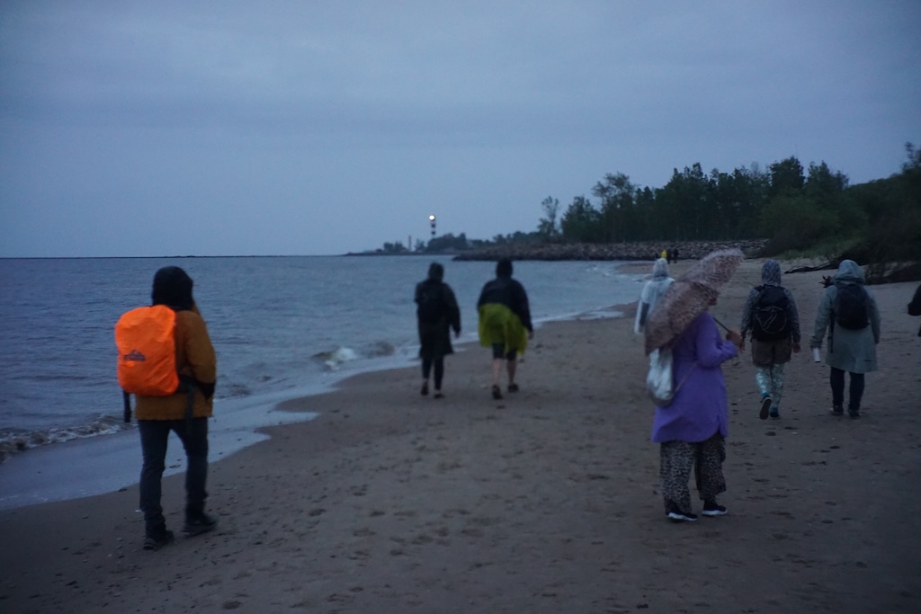 Pēdējā pietura - Daugavgrīvas bāka. Sasniedzama gar jūru. Agrāk bija grūtāk. Kad vasara vēl nebija pusē. Tagad - gluda taciņa. Labi, viens slīps kāpiens lejup. Bet tas sīkums. Un arī pie pašas bākas laida. Citkārt - ni, ni. Bet te - lūgtum! Ja vien esi sarakstā. To gan pārbauda šādi. "Vai esi sarakstā?" - "Jā, esmu." Un es patiešām biju. Pat jāmelo nebija. Pieskāros bākai. Tā ir īsta. Gudrun Holck un Eva Vēvere uzskaņoja Daugavgrīvas bāku. Ar dziesmām, kas atskan bākā. Ielūrēt bākā - ļauts. Līst iekšā - neļauts. Vismaz tā varētu būt. Nemēģināju kāpt. Vimba varētu, to nešaubos. Vai viešņas no citām planētām? Kopīgu valodu atradām. Iespējams. Par to nekad nevar drošs. Tad lielais aplis. Gaisma. Šoreiz tā, kas tuneļa galā. Ne tā, kas par Zaķa apziņu. Tas arī viss. Tomēr - šis nebija Galapunkts. Tas, no Prusaku ansambļa plates. No Daugavgrīvas bākas ir iespējams atgriezties. Es - kā Daugavgrīvas bākas liecinieks. Tepat - kreisajā krastā. Auto gan noparkots par tālu. Tas nekas. Skaistais pārgājiens cauri ap pusnakti.