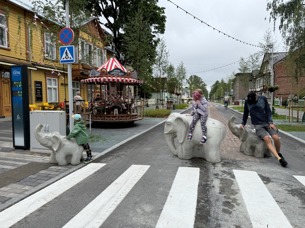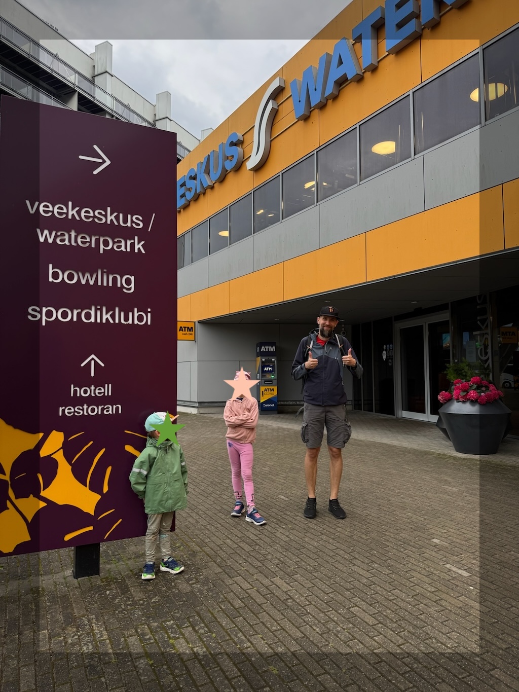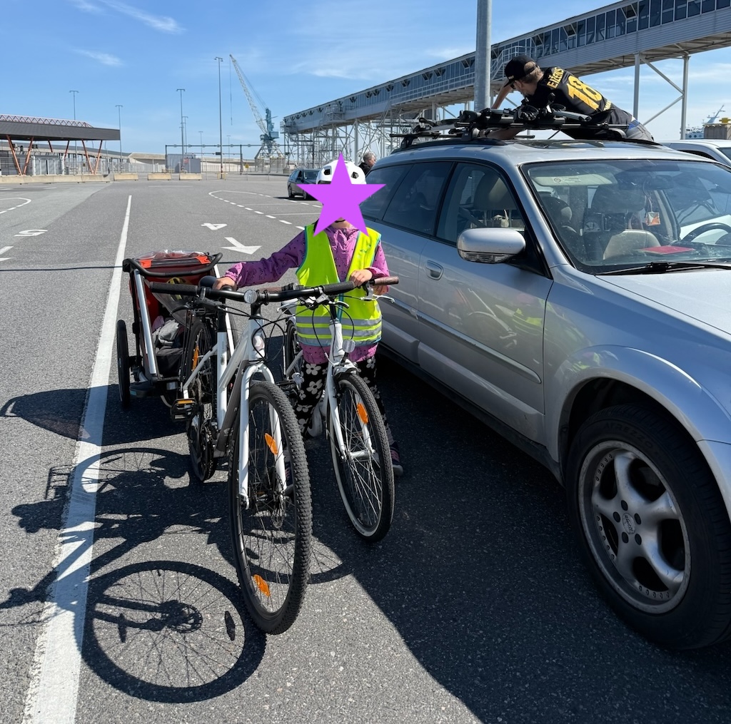 Laiks bija nelāgs, un motivācijas doties pastaigā vai velobraucienā pa lietus pārņemto Pērnavu nebija. Kā nekā šajā pilsētā pēdējos gados ir būts daudz - nav tā tik ļoti ekskluzīva pieredze, lai es laikapstākļus pilnībā ignorētu. Ko darīt? Zināms, ka latvieši bieži uz šo Igaunijas kūrortpilsētu dodas, lai apmeklēt akvaparku, tad nu mēs arī tā izdarījām. Līdz akvaparkam gan bija gabaliņš, ko iet, un šo laiku izmantoju, lai izpētītu situāciju ar prāmi. Jā, pa šo laiku bija jau gandrīz pieņemts lēmums, ka tomēr dosimies uz Somiju. Un te man bija pārsteigums, kas patiesībā bija absolūti loģiski, tikai man kaut kā tas nebija ienācis prātā. Proti, jautājums bija par to, kā notiek došanās uz prāmja ar automašīnu un velosipēdiem. Kā izrādījās - šis ir sarežģīts jautājums. Iepriekš bija braukts vai nu ar mašīnu vai ar riteņiem, bet šajā piegājienā notika kombinācija. Braucot divatā, situācija ir vienkārša - iekrāmē riteņus mašīnas aizmugurē, un brauc kā parasts vieglais auto. Taču mūsu situācijā, ieskaitot milzīgo mantu daudzumu (un četrus cilvēkus) šis īsti cauri neietu. Tikām, ja riteņi paliek uz jumta, tev nepieciešama vieta tajā prāmja autostāvvietas daļā, kur nonāk augstākie transporta līdzekļi, līdz ar to tevi pielīdzina teju vai autobusam, kas nozīmē stipri augstākas izmaksas šādam pārbraucienam. Un prāmju cenu salīdzinātājs vispār neakceptē tādu variantu, ka varētu būt vairāk transporta līdzekļu nekā pilngadīgu braucēju. Beigās tomēr risinājumu saštukojām: Marina ar bērniem pārtaps par riteņbraucējiem (Jurģis piekabē, Estere uz sava divriteņa), kamēr es savu riteni iestūķēšu mašīnā un tad būšu autovadītājs vientuļnieks.